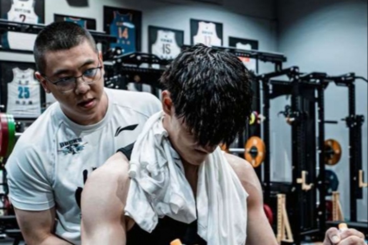曾凡博继续进行背部康复训练,为月底前往布鲁克林做准备。图中他在北京与TT运动表现体能馆的长期训练师段然在一块。他预计会为10月10日和12日在中国澳门举行的NBA中国赛做好准备。