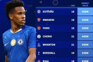体育资讯8月13日讯 德国转会市场盘点了英超U21球员身价,切尔西新援埃斯特旺6000万欧排第一。