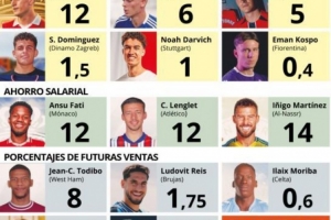 到目前为止,巴萨已经在德科的带领下通过转会、租借、二转分成以及节省工资等方式入账近7500万欧。伊尼戈突然转会利雅得胜利,不仅为巴萨节省出了约1400万欧工资,球员还放弃了7月薪水和尚未付清的款项。此外,法蒂外租和朗格莱自由转会马竞也分别为巴萨节省了1200万欧年薪。