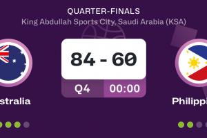 体育资讯8月13日讯 今日男篮亚洲杯八强赛,澳大利亚84-60大胜菲律宾,轻松晋级四强!
