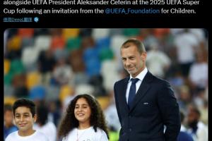 本场比赛,两名巴勒斯坦难民儿童,受到欧足联儿童基金会邀请,与欧足联主席切费林一起参加赛后的颁奖仪式。