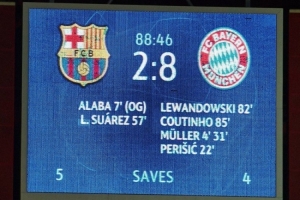 2020年8月14日进行的欧冠1/4决赛中,拜仁8-2击败巴萨,最终一路奏凯斩获2019-2020赛季欧冠冠军。