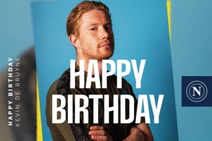 那不勒斯官方社媒晒出为德布劳内制作的生日海报,配文:“生日快乐,凯文!让我们一起书写未来!”