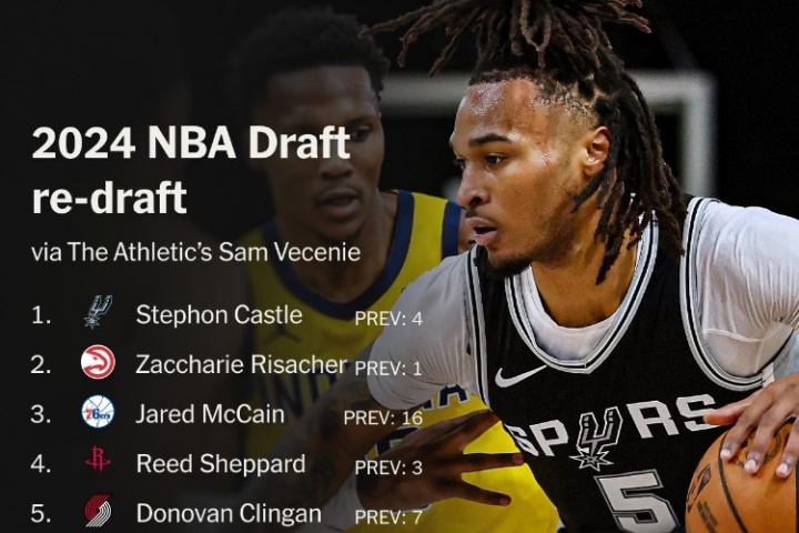 体育资讯08月15日讯 TA记者Sam Vecenie重排了2024年选秀前十,以下是详细情况: