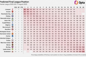 2025-26赛季英超联赛开赛在即,看看Opta超级计算机对新赛季英超的预测。