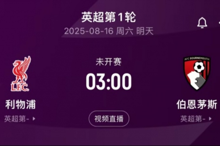 明晨3:00英超揭幕战!利物浦vs伯恩茅斯,卫冕冠军能否取得开门红