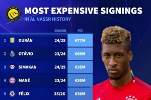 利雅得胜利队史最贵引援榜: