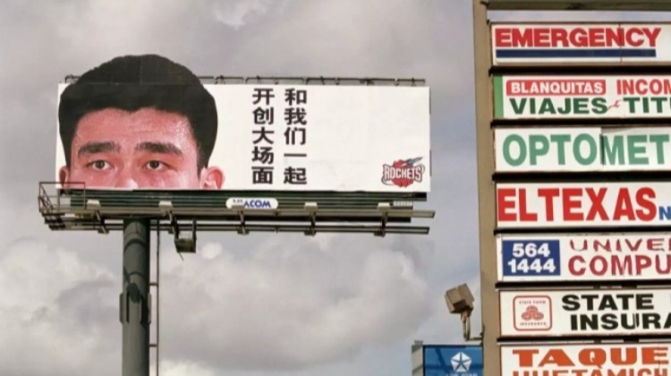 2002年,火箭队在休斯敦全市张贴了印有姚明形象的广告牌,并配以球队的中文口号——“开创大场面”(用中文书写)。