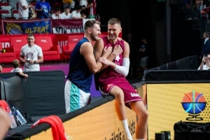 体育资讯8月16日讯 斯洛文尼亚篮协官方账号晒出了东契奇和前队友波尔津吉斯赛前互动的照片,并配文:“熟悉的面孔。”