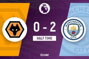 半场-曼城暂2-0狼队 哈兰德破门赖因德斯建功+精彩策动进球