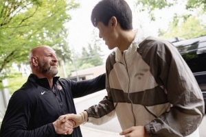 体育资讯6月28日讯 近日在选秀大会上被开拓者选中的中国球员杨瀚森已来到队中,受到热情接洽。