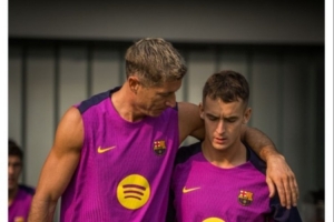 今日,巴萨官方晒出莱万训练图,并配文写道:“对年轻人来说,能够从莱万的建议中学习是一种荣幸。”