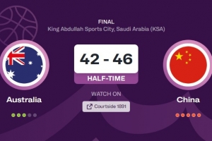 体育资讯8月18日讯 男篮亚洲杯决赛今天拉开大幕,中国男篮对阵澳大利亚男篮。半场结束时,中国男篮46比42领先。