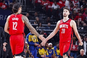 今年2月亚当斯通过交易来到火箭。今年季后赛期间他场均22.1分钟可贡献5.7分6.6板1.1帽。