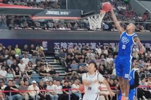 著名演员邓超的一记上篮遭遇库兹马大帽扇飞,前者愣在原地。