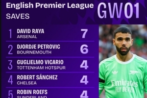 体育资讯8月20日讯 新赛季英超首轮比赛已经结束了全部争夺,根据Squawka的数据统计,阿森纳门将拉亚7次扑救为本轮最多。