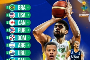 体育资讯8月20日讯 今天,男篮美洲杯官方公布了新一期的美洲杯实力榜,巴西男篮升至第一,美国男篮降至第二。具体如下(括号内为相比上一期的升降名次):