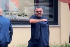 加图索与阿莱格里、塔雷交谈,并与加比亚、里奇、莱奥、普利西奇等球员打招呼。