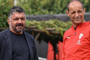 米兰官方社媒晒出加图索与阿莱格里的合照,以及布冯与迈尼昂的合照,配文:“欢迎加图索和他的教练团队造访米兰内洛。”
