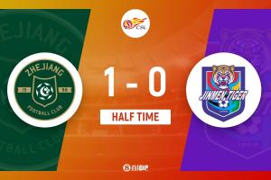 上半场比赛结束,浙江主场暂时1-0领先天津津门虎。