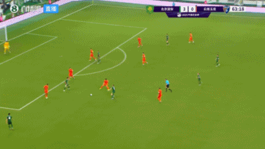 比赛第64分钟,李磊左路传中,张玉宁头球摆渡,林良铭补射破门!