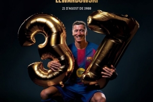 体育资讯8月21日讯 今天是巴萨前锋莱万的37岁生日,巴萨官方为他送上祝福。