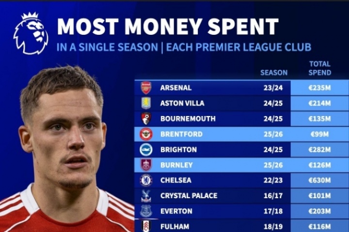 今年夏窗,布伦特福德、伯恩利、利物浦和桑德兰4支球队都已创造了各自球队单赛季引援花费的历史纪录,在转会窗关闭前还可能会有更多球队加入他们的行列。