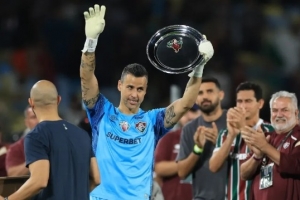 44岁的巴西门将法比奥在周二打破了英格兰传奇彼得-希尔顿保持的1390次出场纪录,成为世界足坛出场次数最多的球员,他在弗鲁米嫩塞对阵卡利美洲的南美洲杯比赛中完成了第1391次出场。