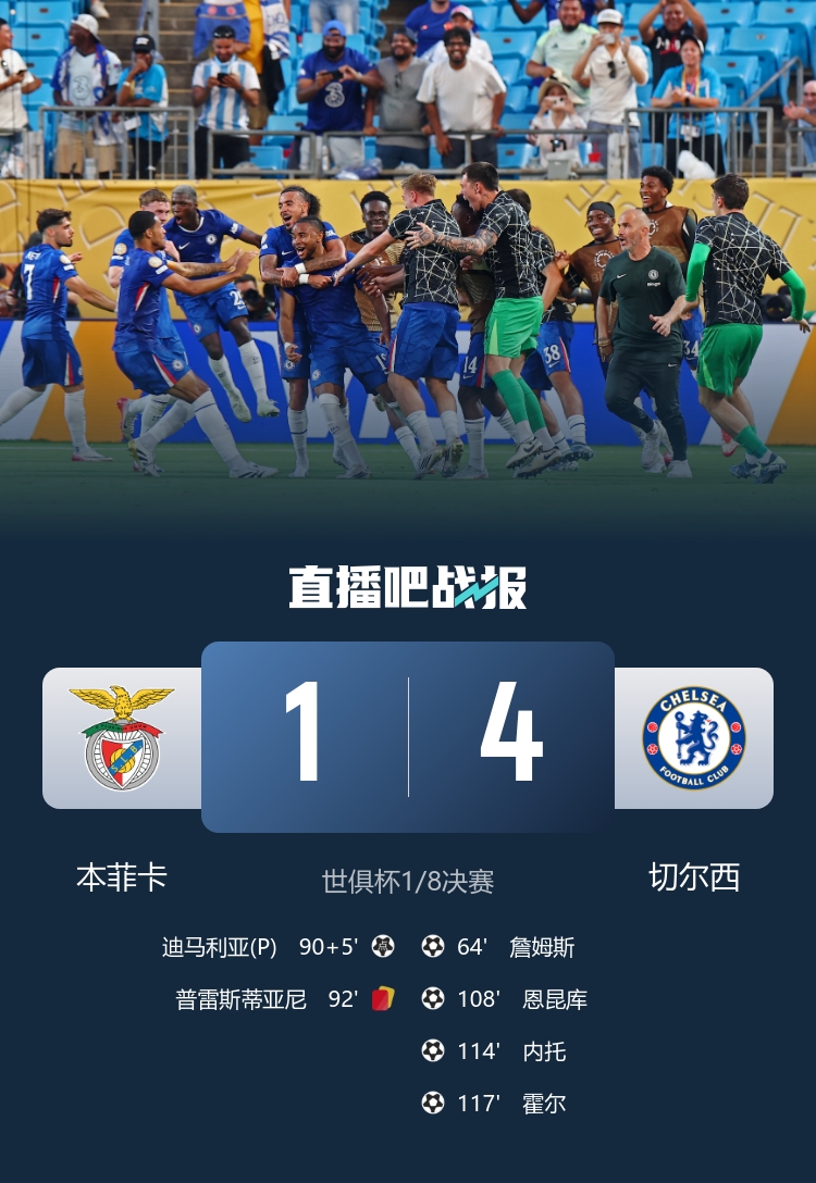 体育资讯6月29日讯 在世俱杯1/8决赛,切尔西经历加时4-1击败本菲卡。