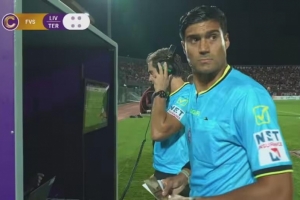 这是FVS系统(足球视频支持)首次亮相,这个系统是本赛季开始在意丙联赛测试使用的一种新的协助判罚手段,也被称为鹰眼挑战。如果比赛中出现争议判罚,参赛球队主帅有权要求裁判观看视频回放。