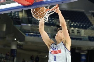 “杨瀚森在联合试训时不会说一点英语,只能哇哇地喊叫要球。接着,他从底线持球转身,一记暴扣将球狠狠砸进篮筐。当时我就站在底线附近,亲眼目睹了这一切。我在推特上向一个朋友发消息:我看到了NBA的未来,而它就在我眼前。”