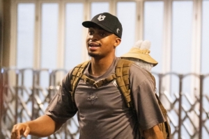 体育资讯6月29日讯 马刺球员凯尔登-约翰逊于昨日抵达了广西南宁市,一身休闲装的他背包上还装饰了个最近人气相当高的labubu。