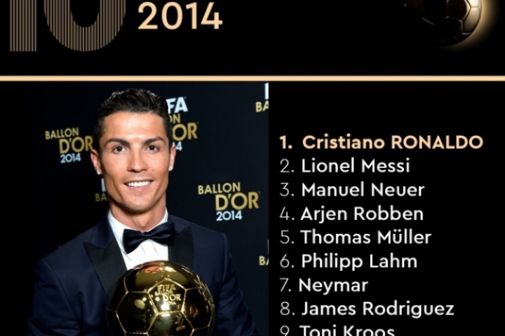 体育资讯08月23日讯 金球奖官方继续每天一期盘点历届金球得主,预热一个月后的2025金球颁奖典礼,今天来到了2014年。2014年C罗获得了自己生涯的第3座金球奖,梅西、诺伊尔排名前三。
