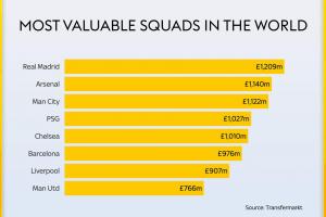 全球身价前八俱乐部(单位:英镑):