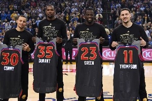 当赛季,勇士在季后赛连续淘汰马刺、鹈鹕、火箭,打进总决赛,又在总决赛横扫了骑士夺冠。