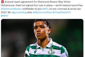 体育资讯08月24日讯 TA名记David Ornstein报道,阿森纳从爱尔兰球队沙姆洛克流浪引进 16岁中场奥日安武纳达协议,2027年1月正式加盟。
