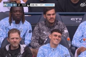 【神秘微笑的原因】地铁报:昨晚外网热议福登在曼城第二个丢球后与队友严肃表情形成对比的笑容,根据转播视频中的音画,福登突然笑可能是因为听到热刺球迷在唱“欧洲冠军,我们知道我们是谁”(Champions of Europe, we know what we are)