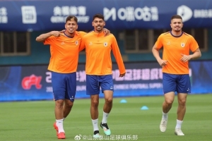 6月29日下午,山东泰山队在郑州航海体育场进行赛前踩场训练,积极备战明天与河南俱乐部酒祖杜康的中超联赛。