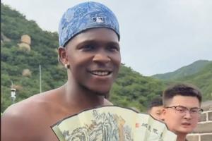 今日,爱德华兹游玩了长城并开启了直播。