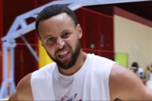 库里对着镜头说道:“老将经验:休息时顺带练练中文,从一数到十。”