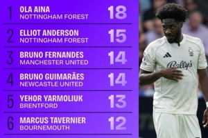 体育资讯8月28日讯 Squawka统计了英超前两轮比赛球员夺得球权的次数,并列出榜单,诺丁汉森林后卫埃纳18次居首,其中10次来自对阵水晶宫的比赛。