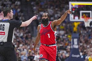 今年季后赛首轮G6,哈登全场20中10,三分8中3,罚球5中5,得到28分6篮板8助攻2抢断1盖帽。但是在抢七大战中,哈登全场8中2,7分5篮板13助攻2断1帽2失误,正负值-29。快船最终3-4被掘金淘汰。