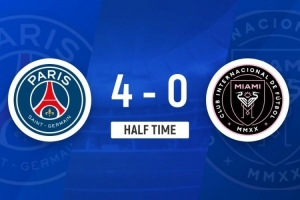 目前巴黎对阵迈阿密的世俱杯1/8决赛正在进行,巴黎上半场4-0领先。