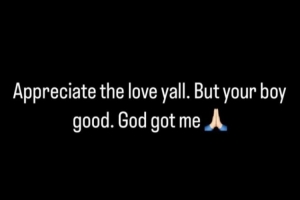 赛后,他更新ins写道:“感谢所有人的关爱,你们的男孩很好,上帝保佑了我🙏。”