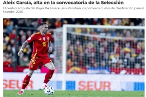 体育资讯8月31日讯 西班牙国家队发布官方公告,宣布补招勒沃库森28岁中场阿莱克斯-加西亚进世预赛名单。