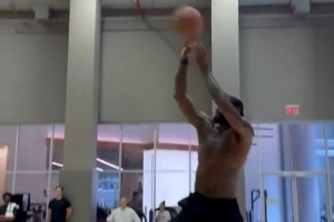 体育资讯6月24日讯 今日,湖人前锋詹姆斯更新Instagram晒出一段他今日在纽约的训练视频。