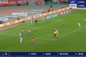 比赛开场仅30秒,泰山队后场拿球被断,古加兜射稍稍偏出,场上比分山东泰山0-0北京国安。