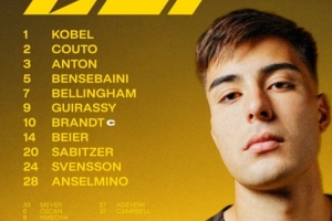 替补:33-迈尔、6-厄兹詹、8-菲利克斯-恩梅查、13-格罗斯、17-丘库埃梅卡、26-莱尔森、27-阿德耶米、37-科尔-坎贝尔