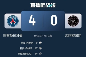 体育资讯6月30日讯 世俱杯1/8决赛,巴黎圣日尔曼4-0击败迈阿密国际,晋级八强。