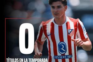 本赛季马竞西甲排名第3,国王杯半决赛负于巴萨,欧冠1/8决赛被皇马淘汰,世俱杯小组出局,没能收获一座冠军奖杯,这也成为马竞前锋阿尔瓦雷斯生涯首个无冠赛季。
